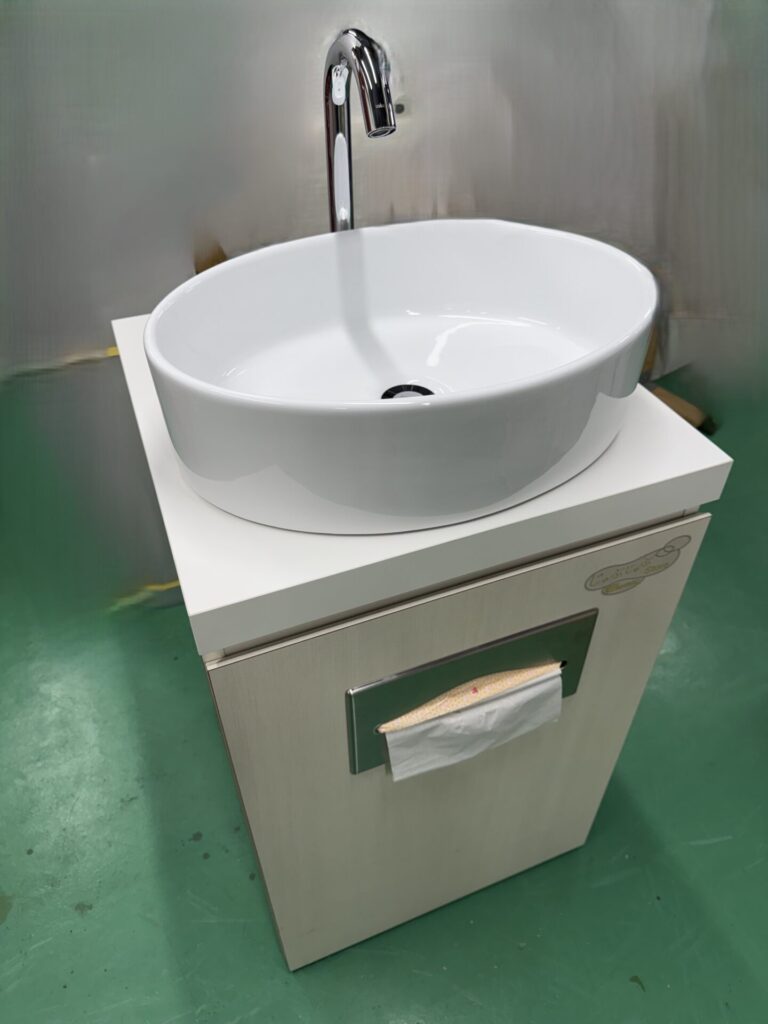 ② じゃぶじゃぶストア(温水器付き)洗面器:陶器製 水栓:自動水栓 ペーパーホルダーケース及びごみ箱付き